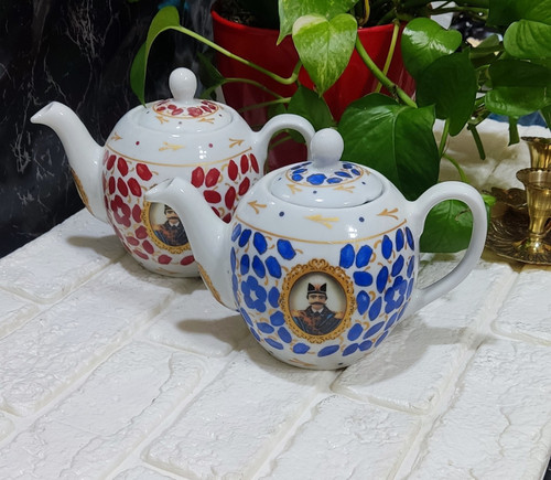 قوری چینی طرح دار سایز بزرگ رنگ سبز
