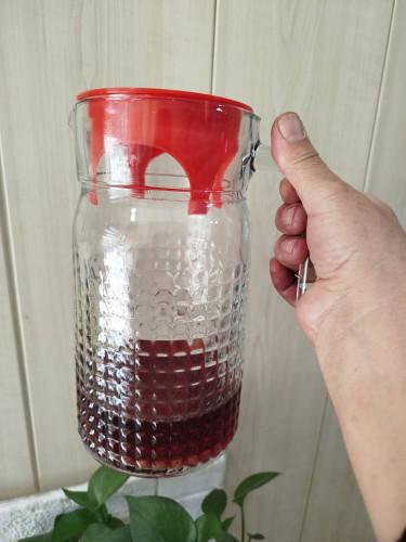 پارچ آب شیشه صورتی درب دار