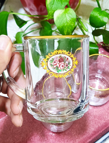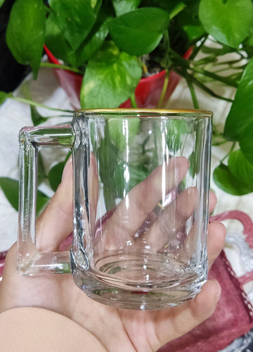 لیوان دسته مربعی لب طلایی بلور کاوه