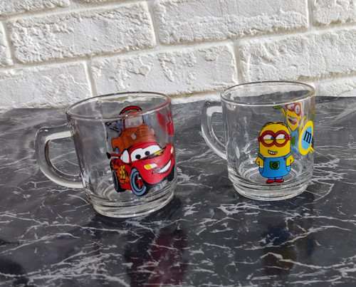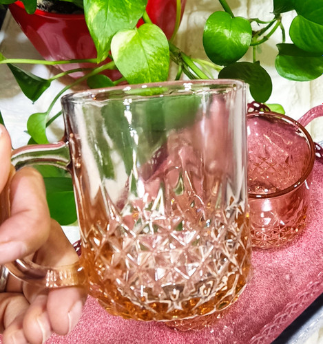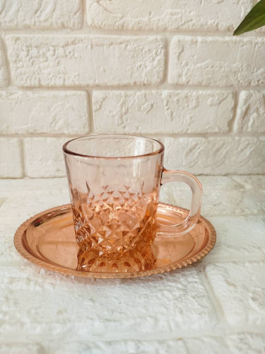 فنجان کمر باریک شیشه صورتی ۶عددی