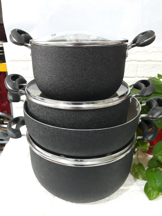 سرویس قابلمه ۷پارچه تفلون مشکی طرحدار