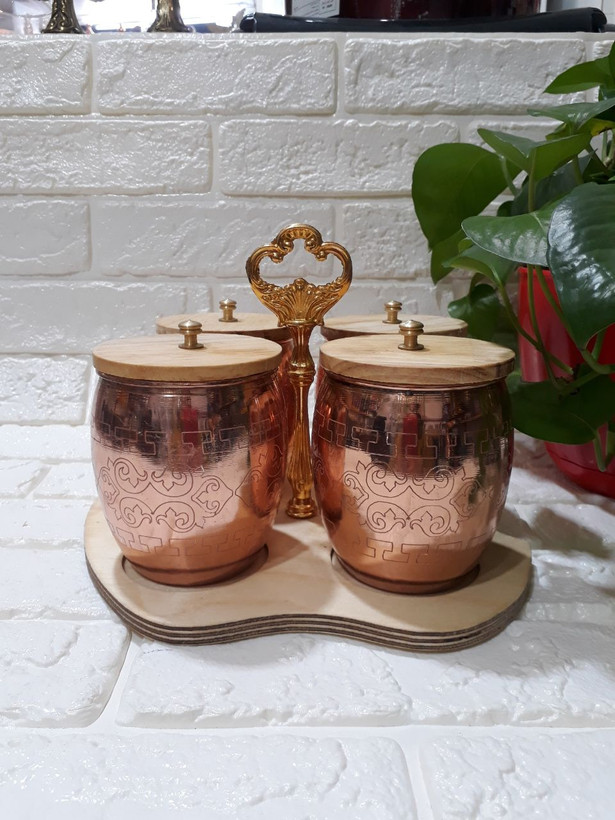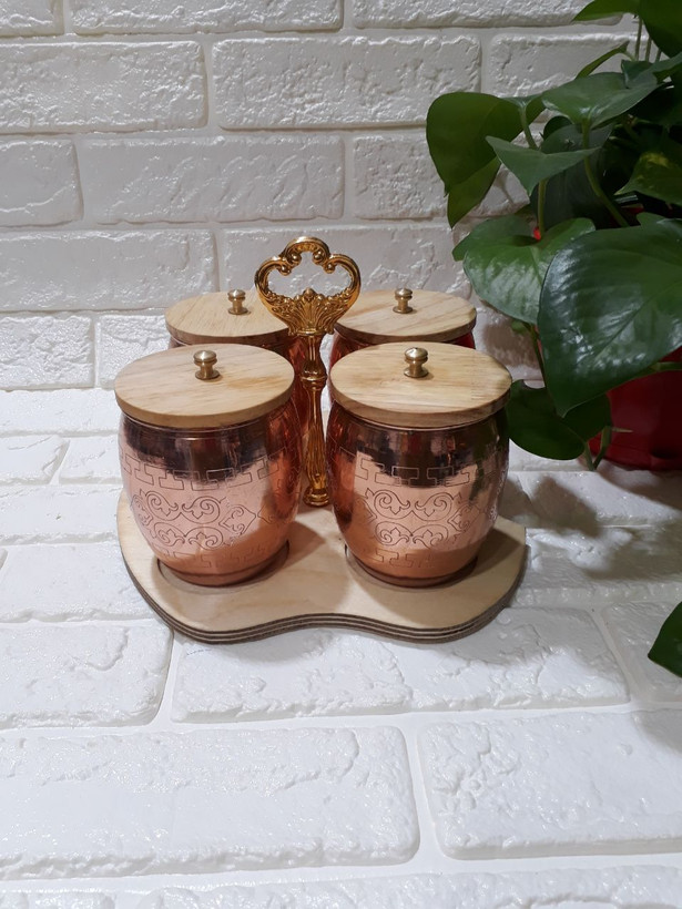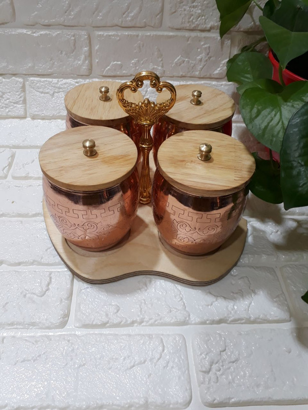 جا ادویه اپل مسی درب چوبی چهارتایی
