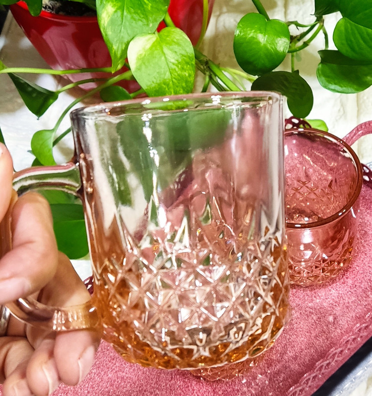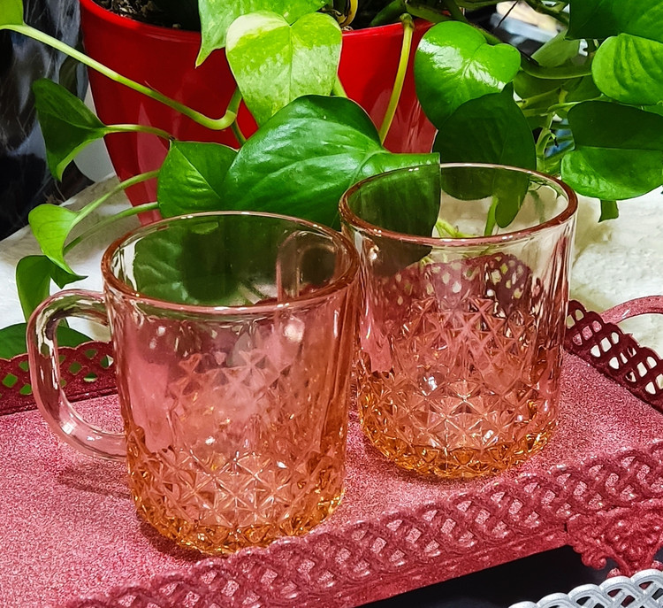 لیوان بلور صورتی ۶عددی طرح دار