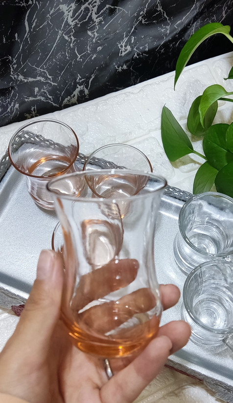فنجان کمر باریک شیشه صورتی ۶عددی