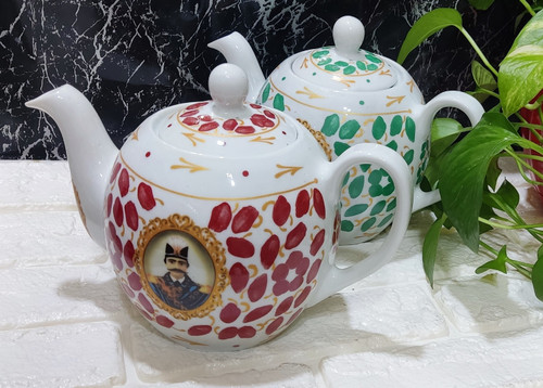 قوری چینی طرح دار سایز بزرگ رنگ سبز